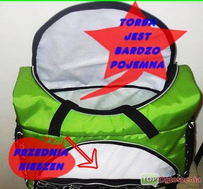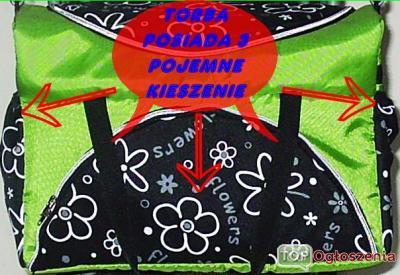 - dodatkowa kieszonka z przodu torby o wymiarze 40x19 zapinana na zamek