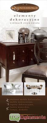 Kwintesencja zaprasza Państwa do obejrzenia wspaniałej, nowej kolekcji mebli kolonialnych, którą właśnie wzbogacilismy nasz salon w Tarnowie. Oryginalne wzornictwo, niekonwencjonalne zdobienia i wspaniała kolorystyka.Zachęcamy do odwiedzenia naszej strony internetowej lub naszego salonu w Tarnowie.